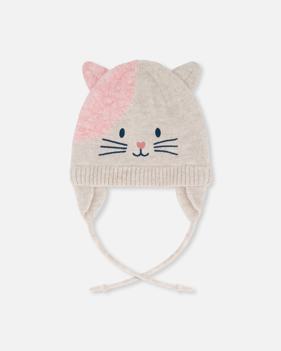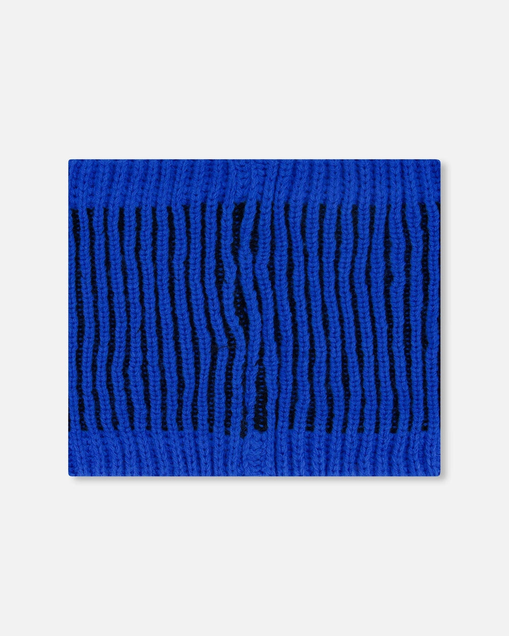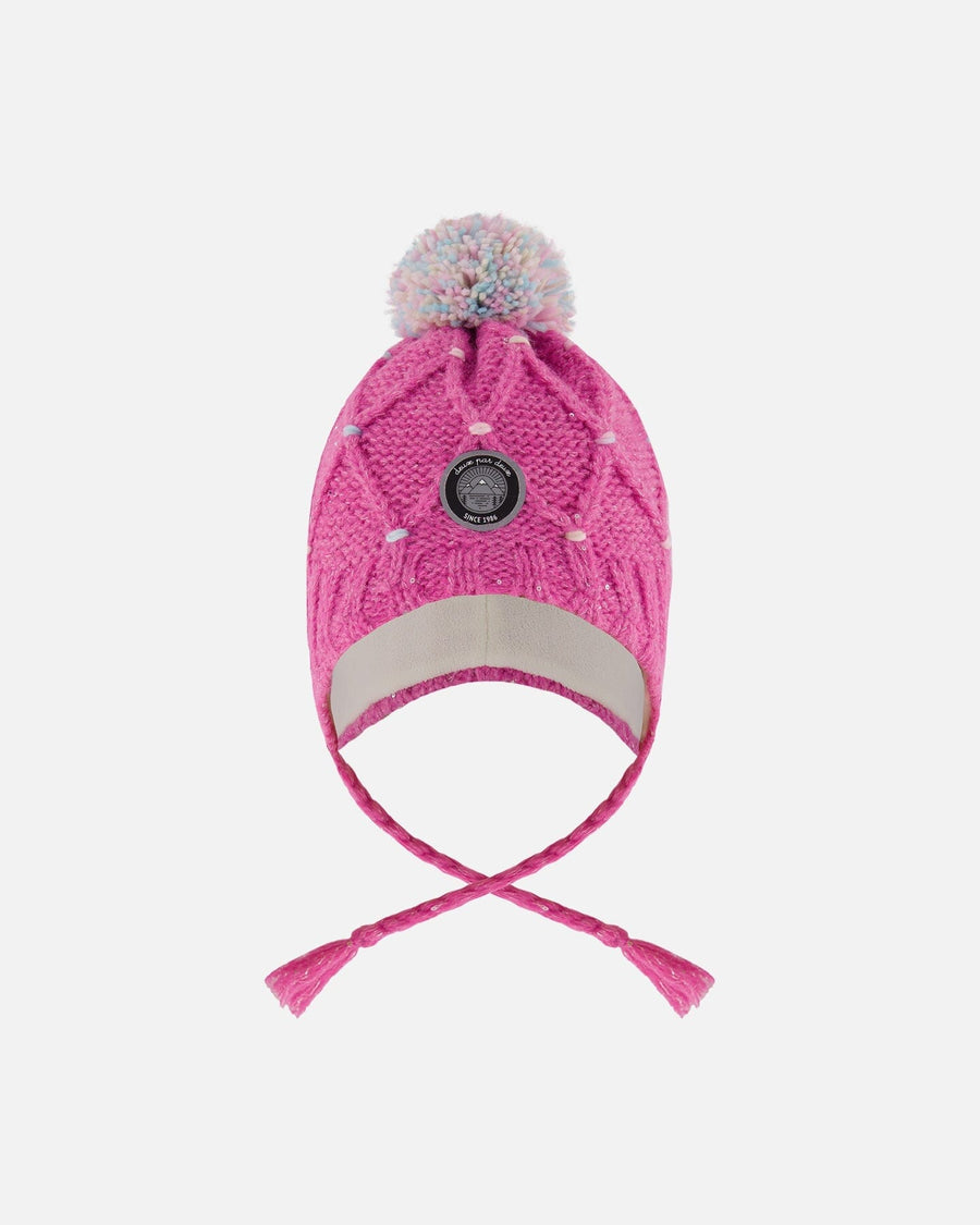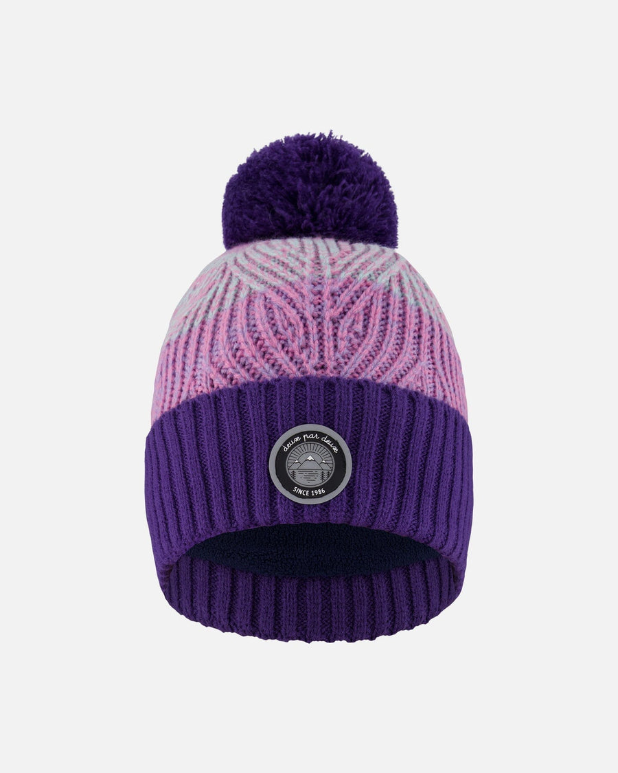 Lined Knit Pompom Hat Blue, Purple And Pink