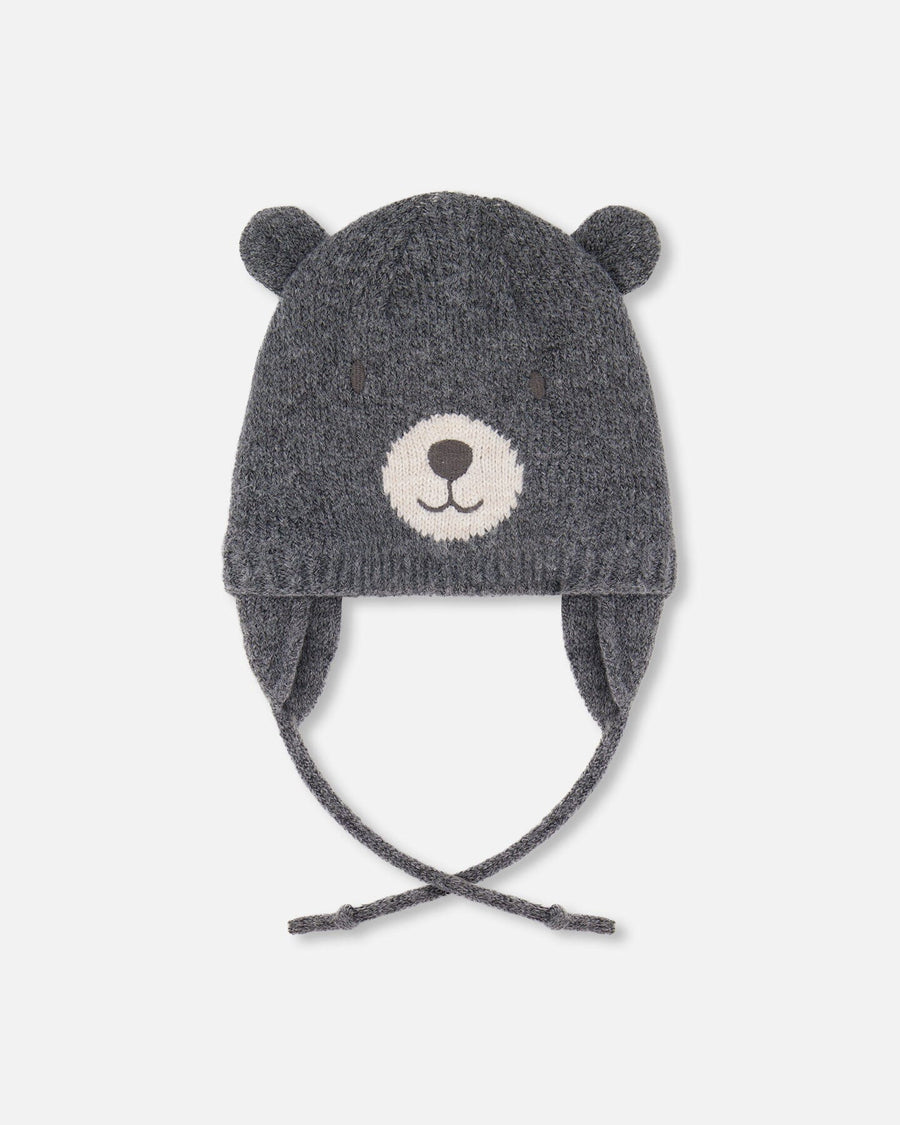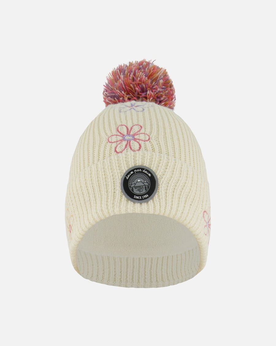 Lined Knit Pompom Hat Black Butterfly Pattern