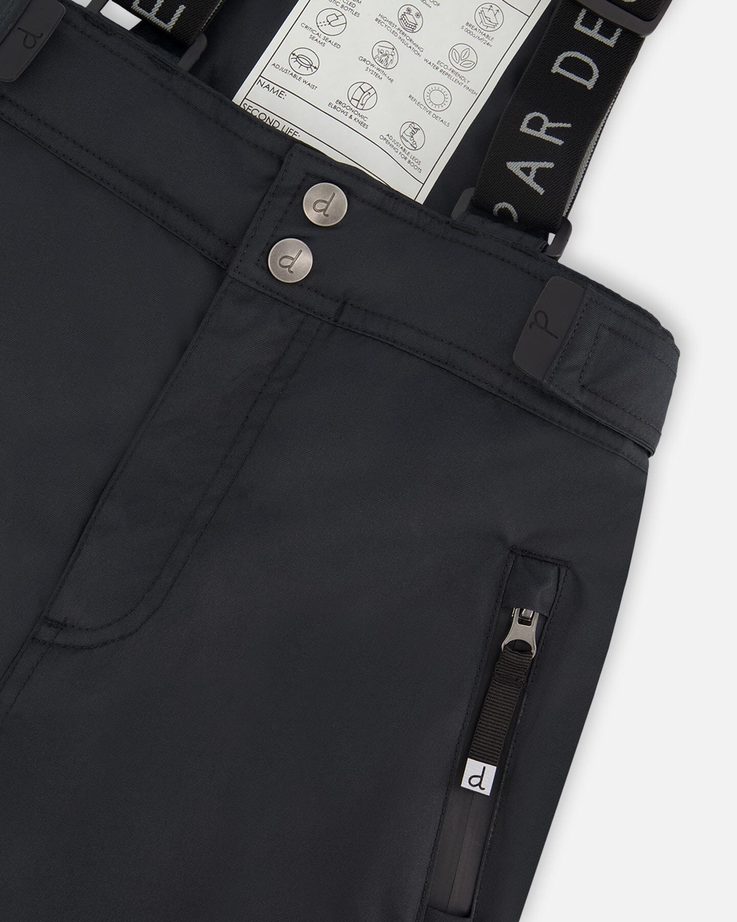 Our two-piece TEKNIK ski suit offers technical function for snow sports enthusiasts who require range of movement that allows them to perform their best on the mountain. Waterproof and breathable with thin PrimaLoft insulation for warmth in temperatures as low as -30°C (-22°F), this snowsuit features a solid jacket with a detachable helmet-friendly hood, articulated, expandable sleeves that grow with the child, and taped seams at critical areas. The contrasting pants feature articulated knees, functional pockets with waterproof zippers, adjustable hems, and a dirt-repellent finish.